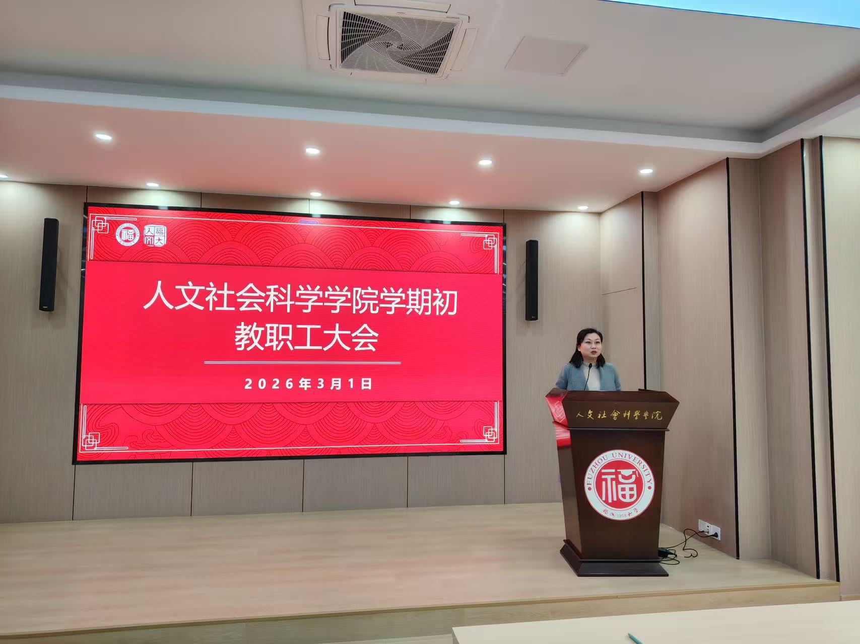 会上,刘玮书记传达了学校2026年春季新学期干部大会精神,重点解读了学校2026年工作要点和九大攻坚任务。2026年是学校全力争列第三轮国家“双一流”建设高校的攻坚冲刺之年,也是“十五五”规划的开局起步之年。她要求全体教职工,同心协力、锐意进取,在新的一年里持续加强教学成果培育、继续开展有组织的科研、推进国际化办学,凝心聚力共筑“福大梦”。