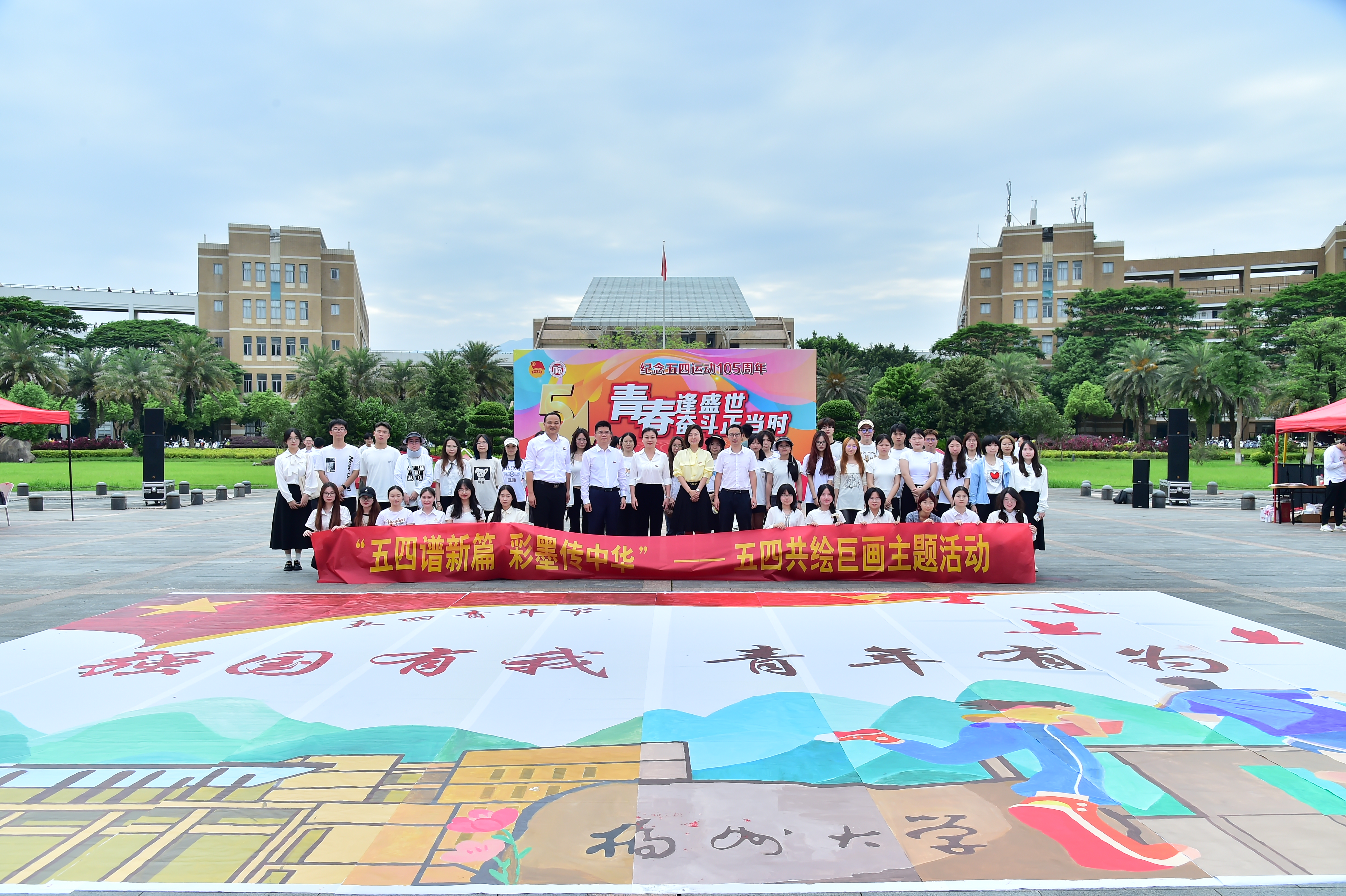 为庆祝“五四”运动105周年,激发新时代青年爱国热情,引导青年筑牢理想信念之基,由校团委主办、人文学院团委、建筑学院团委联合承办的“五四谱新篇,彩墨传中华”五四青年节主题活动于5月7日下午在图书馆福万广场隆重举行。校党委副书记黄身勇,校团委书记刘玮,人文学院党委副书记陈永福莅临现场指导,人文学院、建筑学院团委书记和学生代表参加活动。