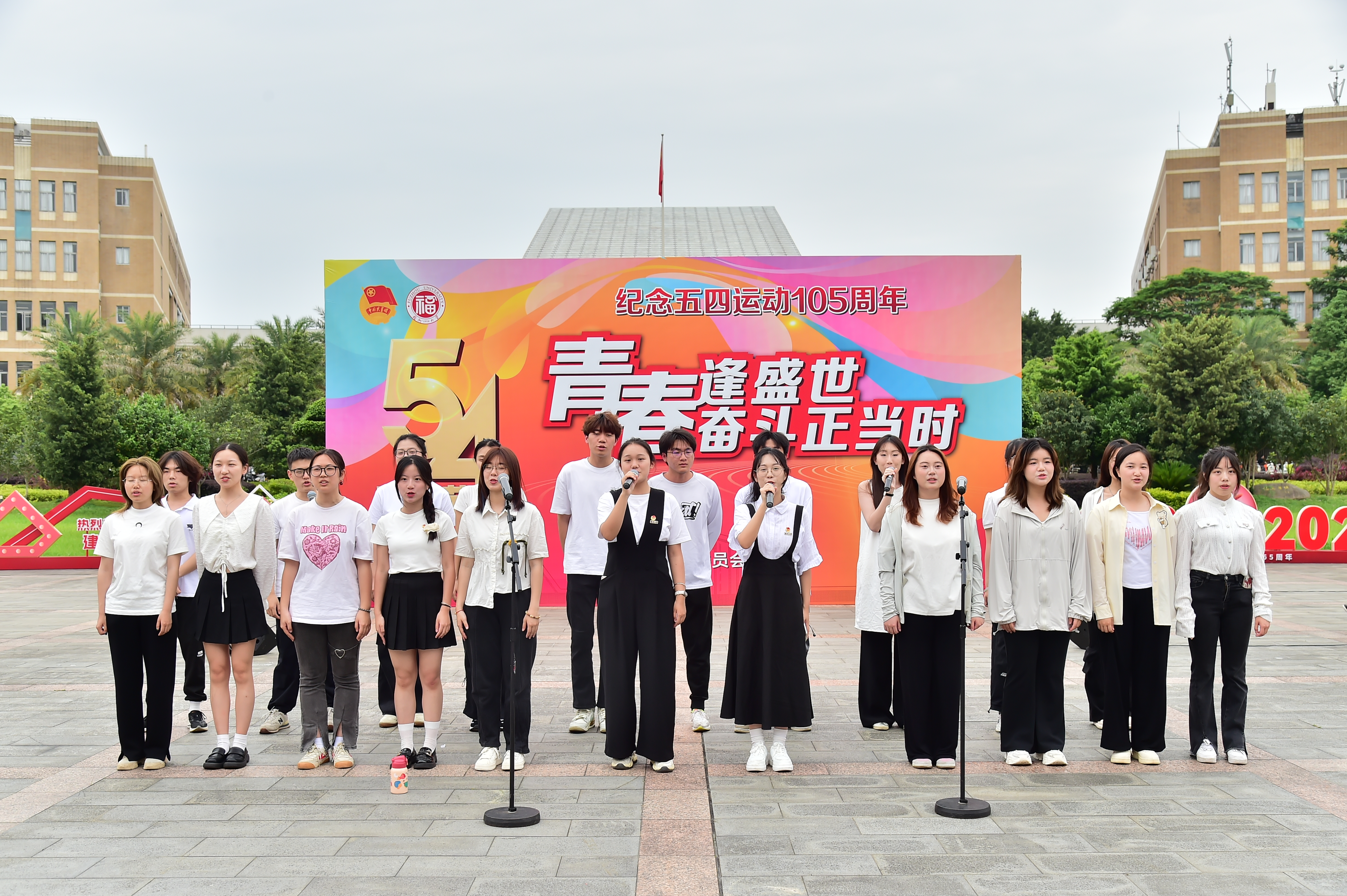 下午2点,活动正式开始。来自人文学院和建筑学院的学子们带来合唱、器乐、街舞等各具特色的演出,展现出福大青年昂扬向上的青春风采。