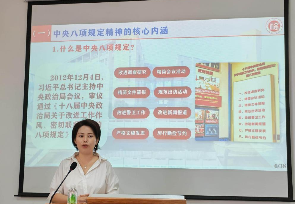 林胜副院长、陈丽君副院长分别向研究生社会学党支部和研究生心理学党支部的党员们解读了深入贯彻中央八项规定精神的成效与经验,强调作风建设不在一朝一夕,必须在思想认识、制度建设等方面久久为功,推进作风建设常态长效。