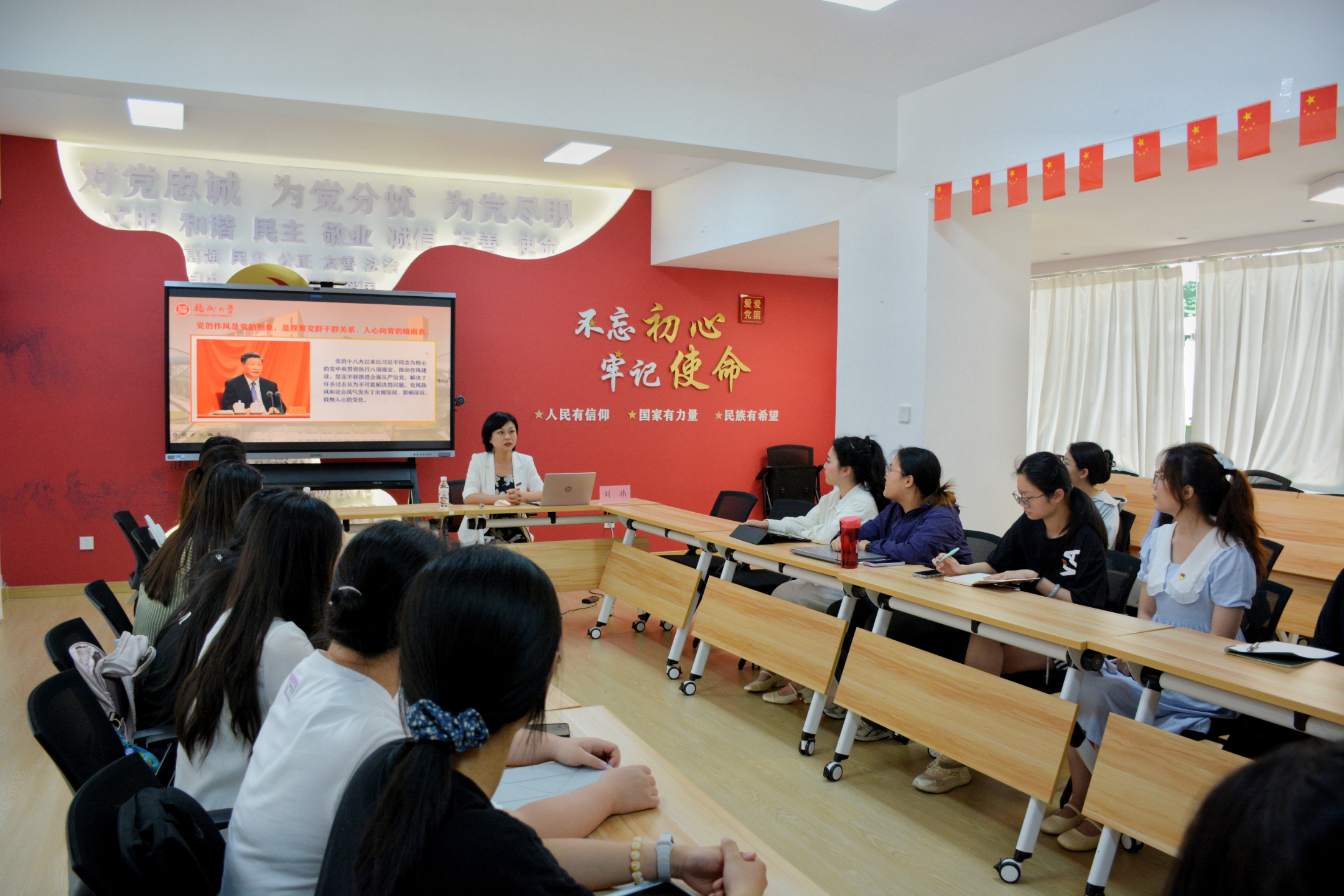 在28号楼社区党校,刘玮书记为本科生第二党支部党员厘清了中央八项规定精神的相关概念,阐释其核心内涵。她以贴近学生生活的案例,提示学生党员们牢记初心使命,发挥先锋模范作用,加深了学生党员们对中央八项规定精神的理解和认识。
