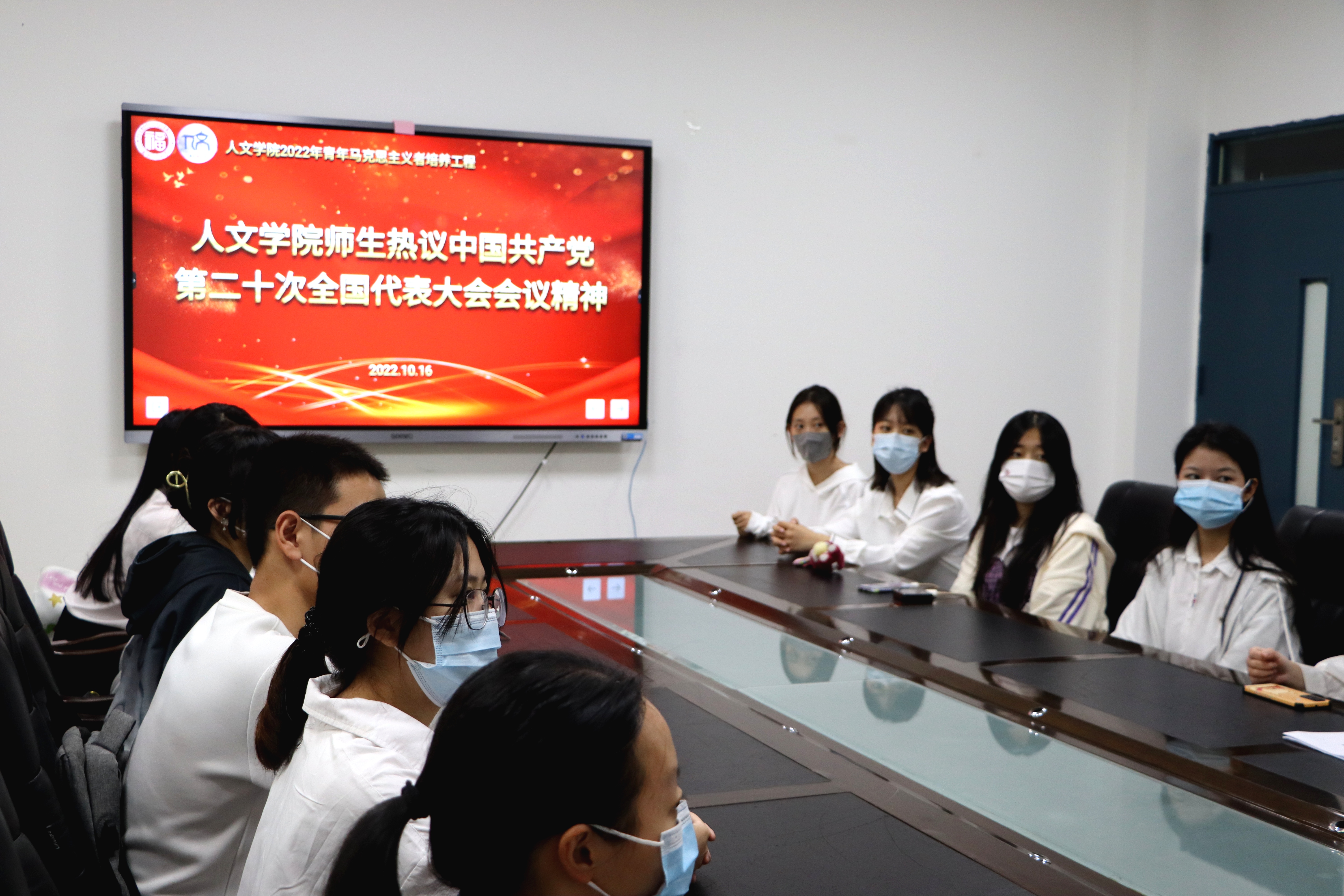 直播结束后,人文学院领导与团委、学生会主要学生干部一同讨论分享心得。党的二十大报告催人奋进,学院师生学习后展开热议。