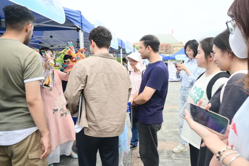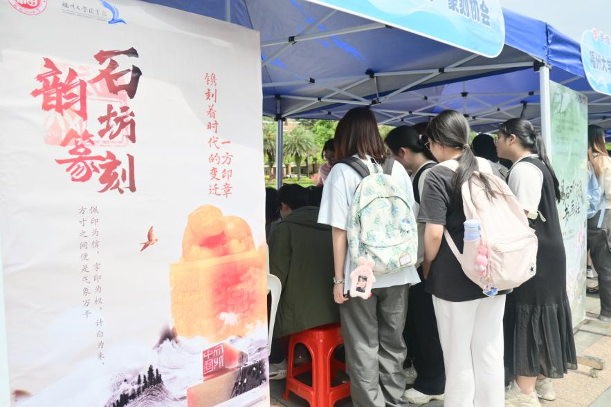 同学们不仅近距离观赏非遗绝活,更可亲手体验剪纸、扎染、拓印等传统工艺。旗峰书院党支部书记林辰芊带领党支部和书院成员走访各个由学生们组织的非遗体验摊位,体验扎染、篆刻、茶艺等非遗项目。这些体验让同学们触摸到了传统文化的温度,发出“作为青年党员,我们要做非遗传承的'火种'”的感慨。