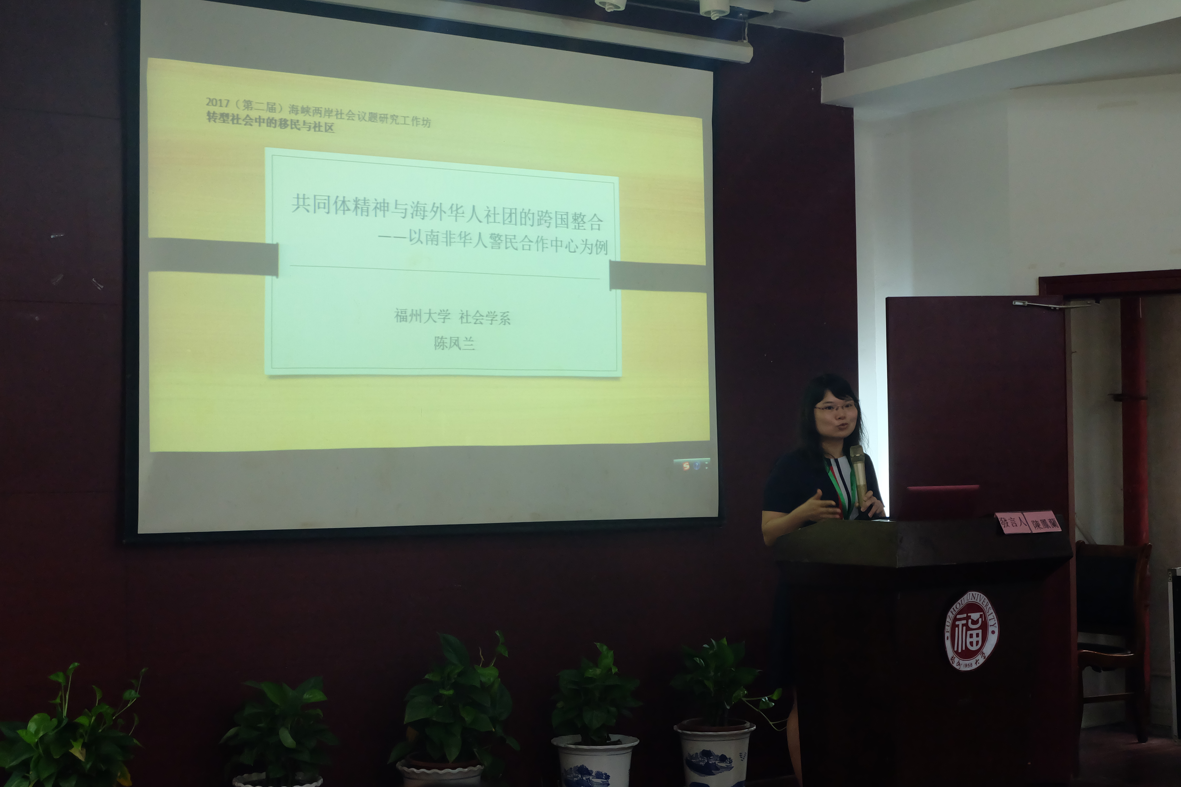 社会学系陈凤兰副教授做为青年学者在会上宣读《共同体精神与海外华人社团的跨国整合——以南非华人警民合作中心为例》,受到两岸专家热评,为进一步修改论文增加了很多思路,收获甚多。工作坊第四天为实地调研,两岸学者共赴福清市一都镇调研海外移民与侨乡社区发展问题。