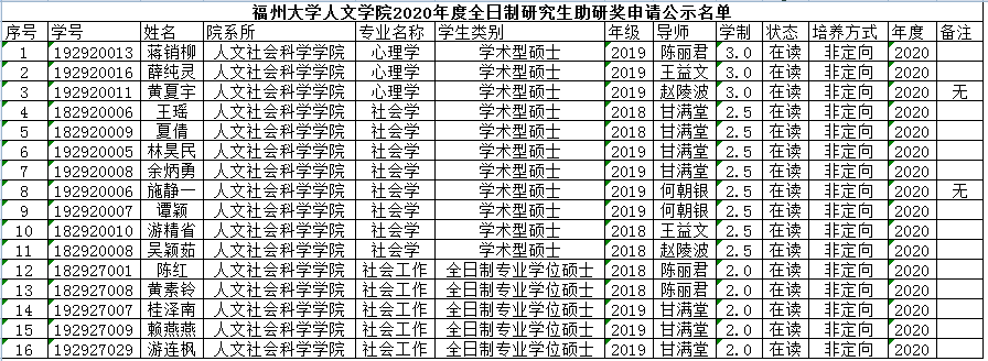 国产av视频 人文学院2020年度全日制研究生助研奖申请名单公示