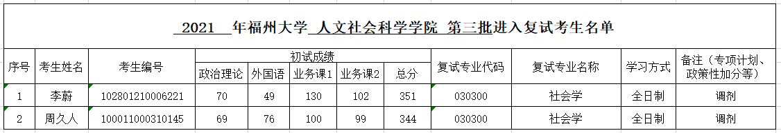 2021年国产av视频 社会学专业缺额1人