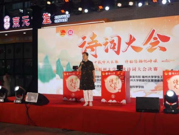 人文学院汉语言文学专业梁桂芳老师对诗词大会作点评与总结。她首先对活动的成功举办与有序组织表示充分肯定,并欣喜地指出,诗词文化在同学中的影响力正持续扩大,鼓励大家勇于展现自我,积极参与校园文化活动。她强调,诗词是中华民族刻在基因里的文化密码,中华文明更是诗的国度;诗词大会作为传承中华优秀传统文化的重要载体,应让诗词融入日常,成为滋养生活的精神源泉。最后,梁老师表达了对活动越办越好的诚挚祝愿,期望热爱古典诗词的同学日益增多,并寄语大家在美好的秋光中从容品味、静心吟诵,共同感受中华诗词的永恒魅力。