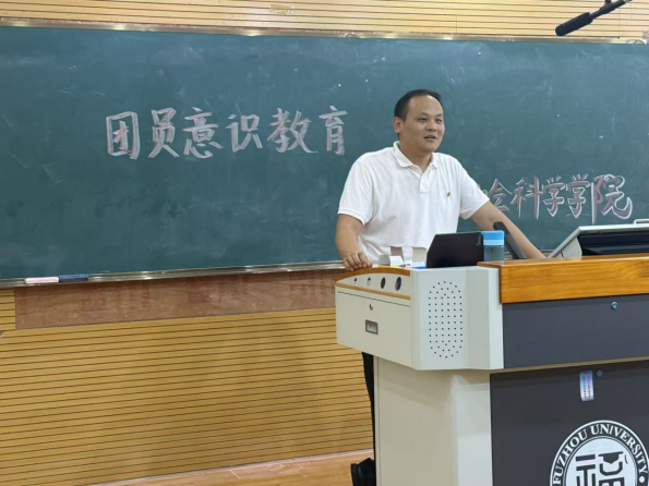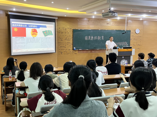 9月26日,院团委书记齐朝阳在铜盘校区B113教室为2025级本科新生带来新生团员意识主题教育讲座。