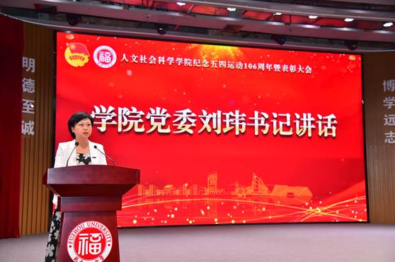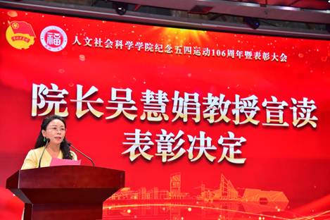 为深入学习贯彻习近平新时代中国特色社会主义思想,弘扬“五四”爱国精神,5月15日下午,人文学院纪念五四运动106周年暨表彰大会在图书馆博学厅举行。