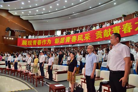 院党委书记刘玮,院长吴慧娟,副院长林胜、副院长陈丽君出席大会。院长助理、各系、办主任、各年级辅导员及学院青年共500余人参会。大会由院党委副书记赵燕松主持。