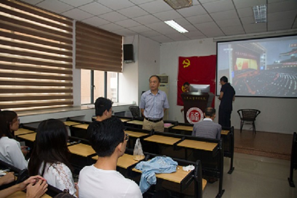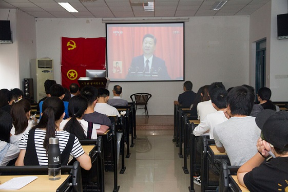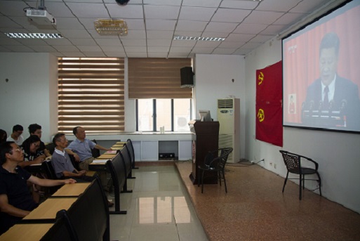 收看前,林秋生书记向师生简要介绍了党的十九大召开的重大而深远的现实和历史意义,要求大家聚精会神收看,认真学习领会大会精神。同时,要继续收看、收听会议期间各代表团围绕会议主题、深入讨论的实况转播,认真学习人民日报、光明日报等报刊和网络媒介刊载、发布的有关十九大精神的重要内容、解读,加深理解,吃透精神。要学以致用,结合工作、学习等实际,做好宣传贯彻工作,为高水平大学和“双一流”建设做出更大贡献。(院党办供稿摄影:王锋)