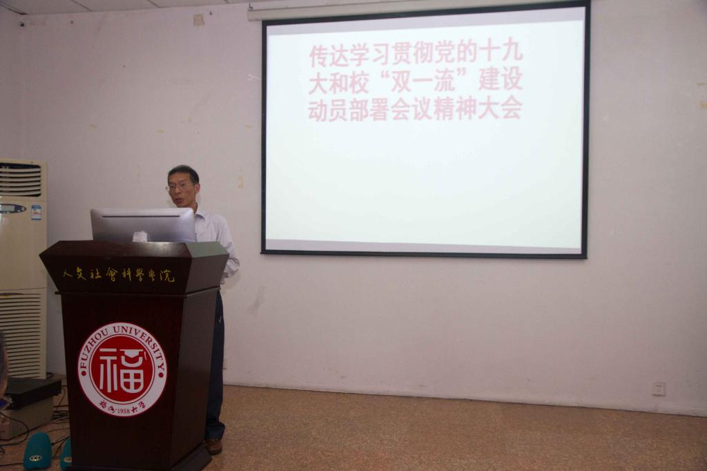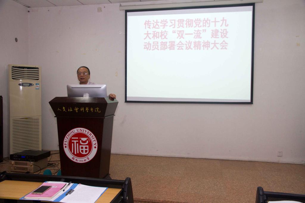 在院202报告厅举行全院教职工大会,传达学习贯彻党的十九大和校“双一流”建设动员部署会议精神。大会由院党委林秋生书记主持。
