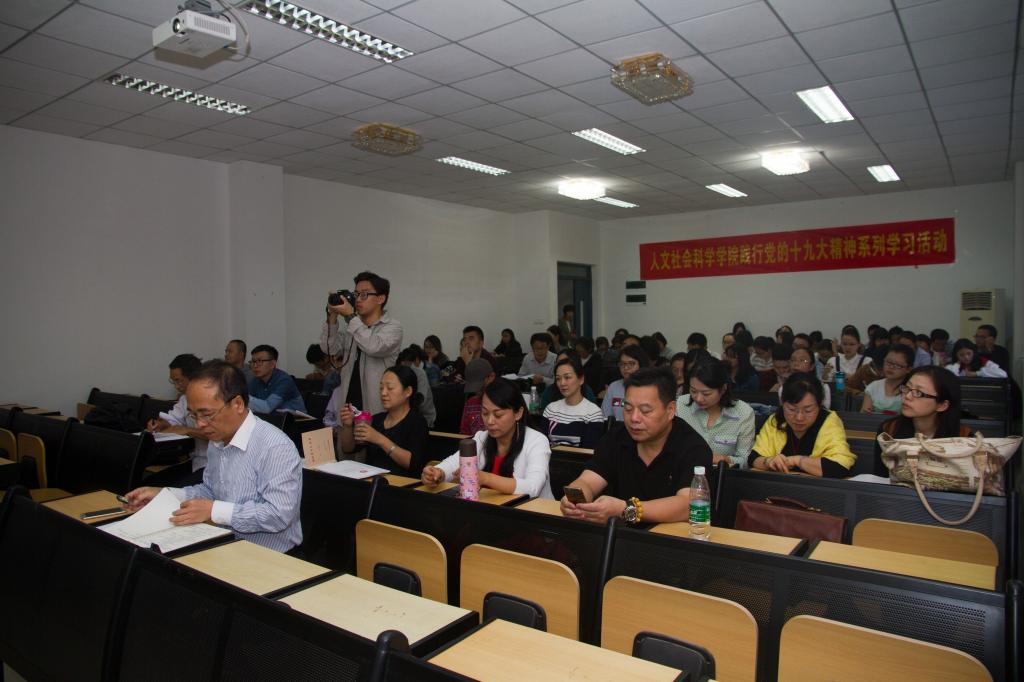 师生员工进一步学习贯彻好党的十九大精神,坚持文化自信,并学以致用,在教学、科研和管理等各自工作、学习岗位上更好地开展作为文科学院师生主要和重要职责的文化实践活动,取得新的更好业绩。