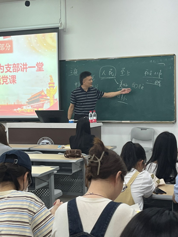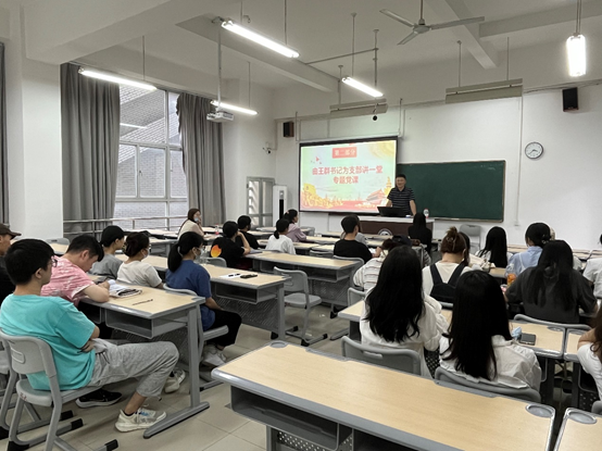 党委书记王群为全体党员、入党积极分子授课,王群书记开展了“人民至上,强化专业特色”为主题的党课宣讲活动,意在进一步提升社工学生的党性修养和党性觉悟,加强社工学生对社会工作专业的认识。