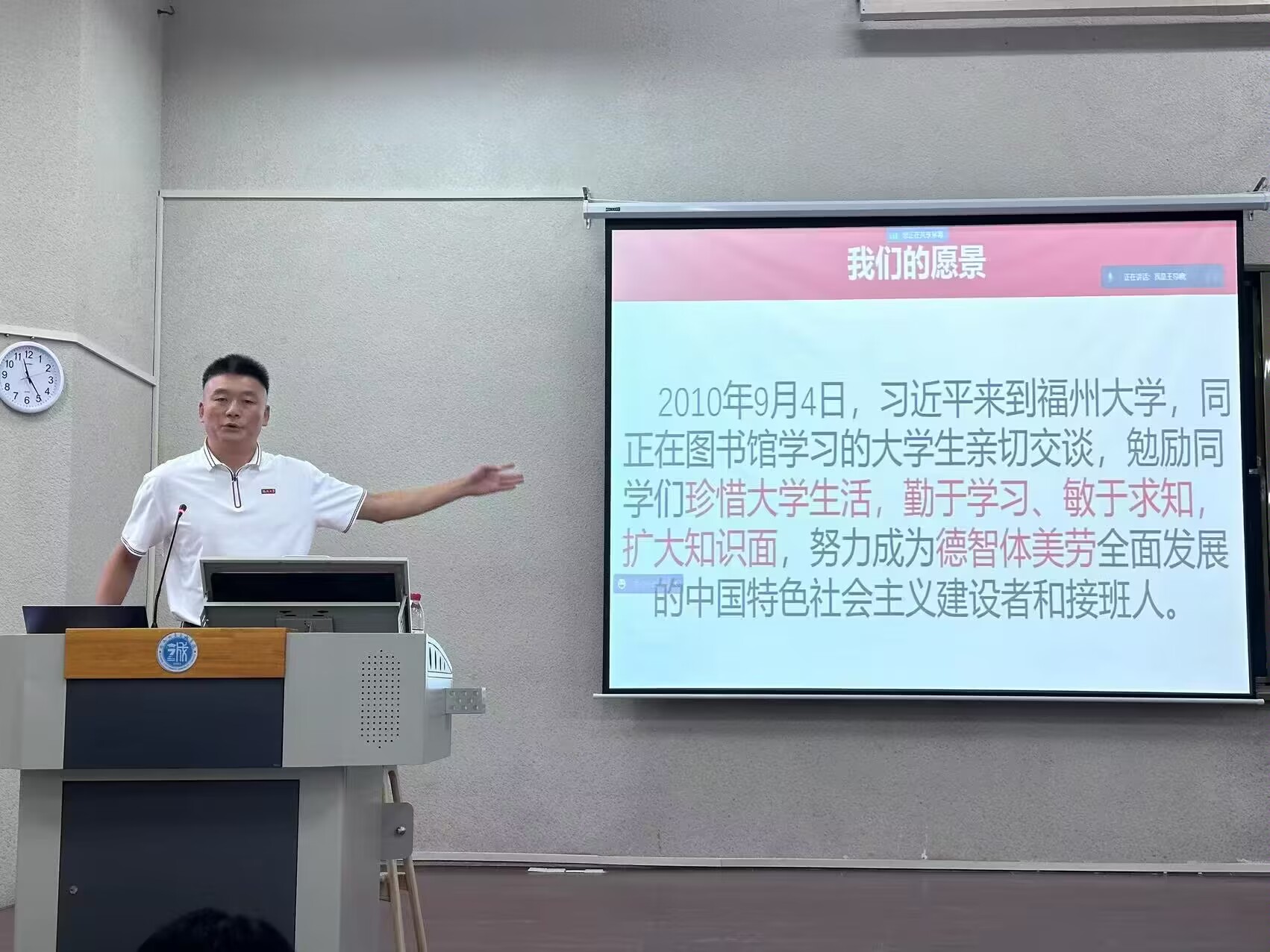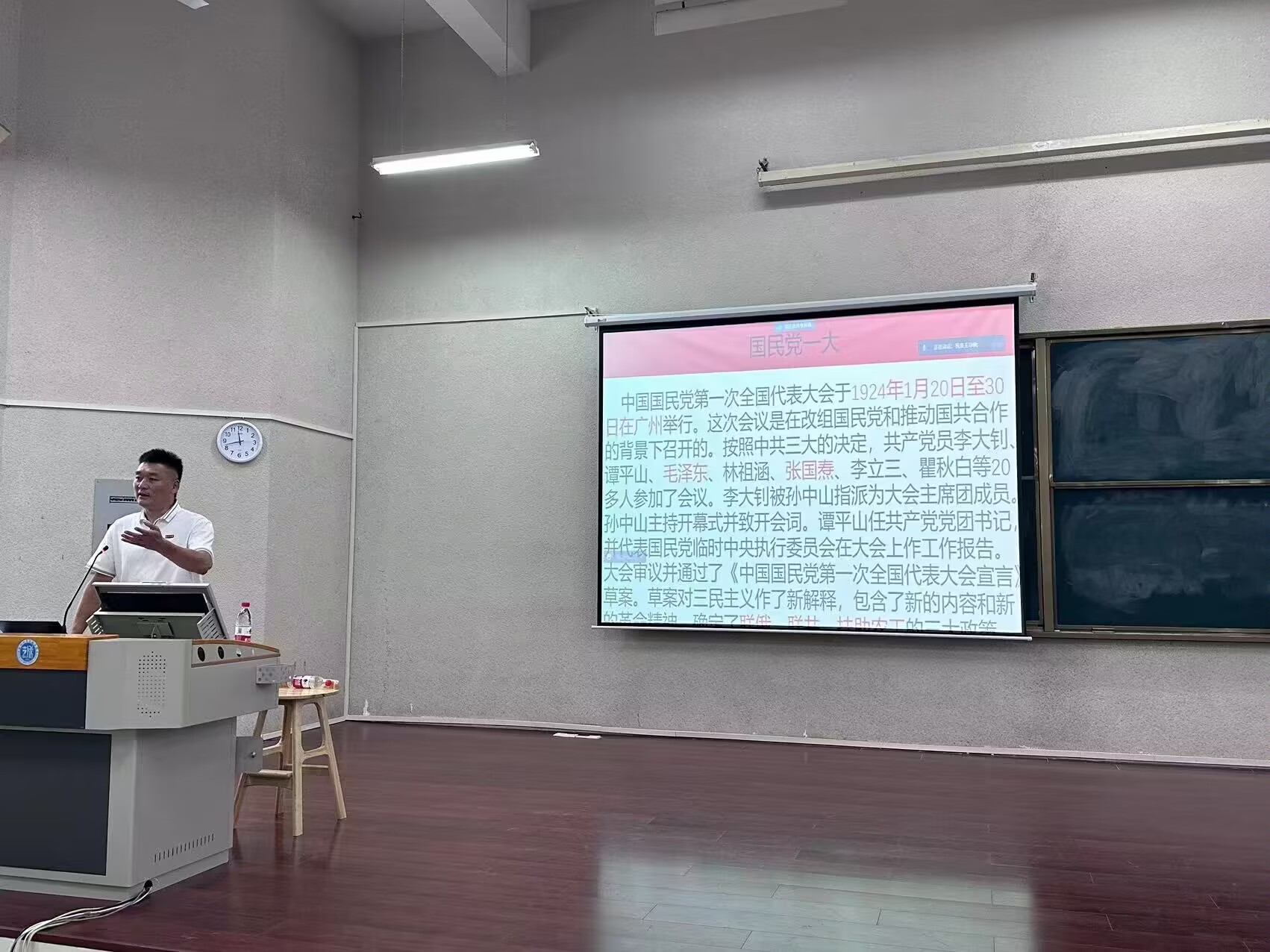 2023级新生主题教育党课。本次课程由学院团委书记、2023级新生辅导员齐朝阳主持。