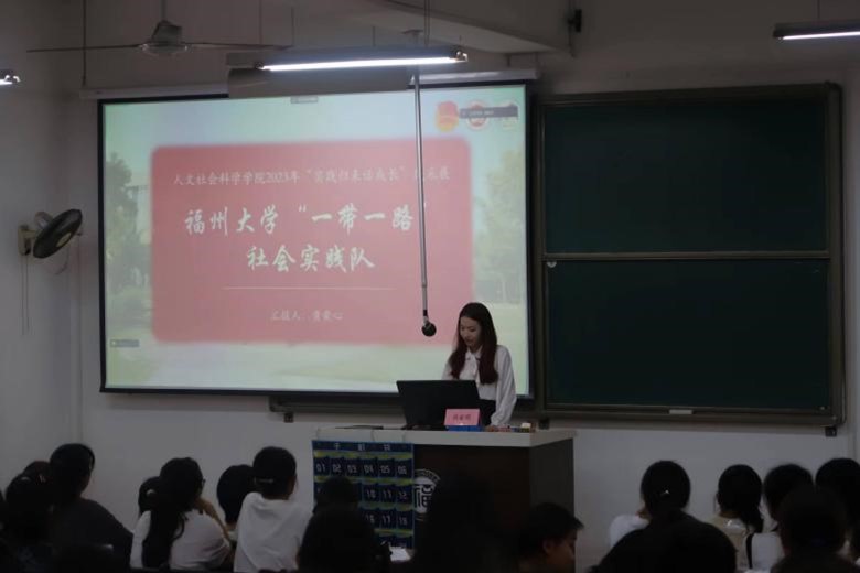 “闽山闽水,兰水长歌”实践队进行风采展示。张倩瑜同学介绍本次实践活动的背景,介绍实践内容,展示媒体宣传和社会实践座谈会等实践成果,并进行了深刻的总结反思。