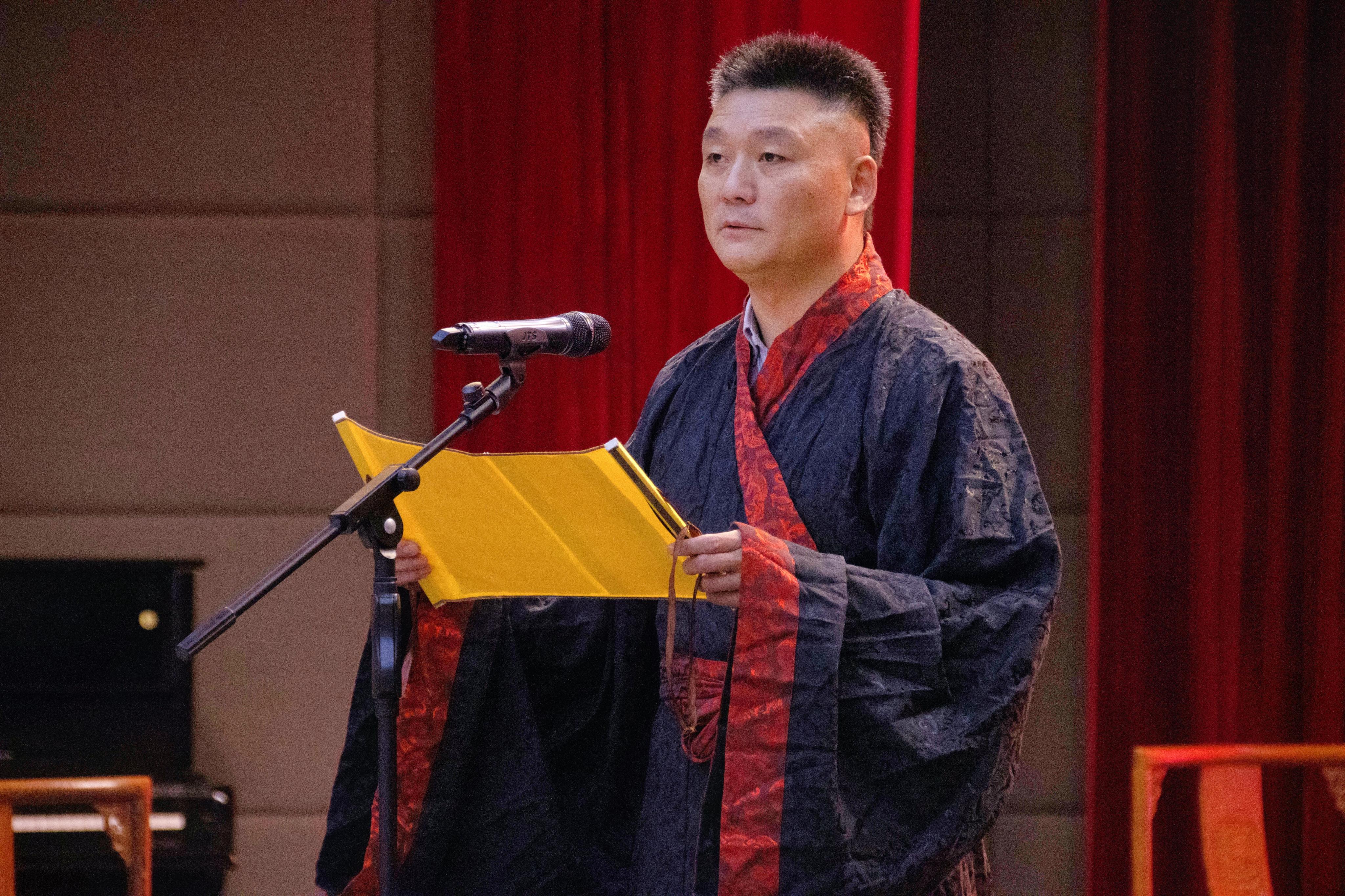 学院党委副书记陈永福教授对典礼进行总结,勉励同学们珍惜大学时光,绽放青春光彩。陈永福教授引用习总书记寄语,向同学们表达深切勉励、殷切期望,表达对人文学子的美好祝愿。