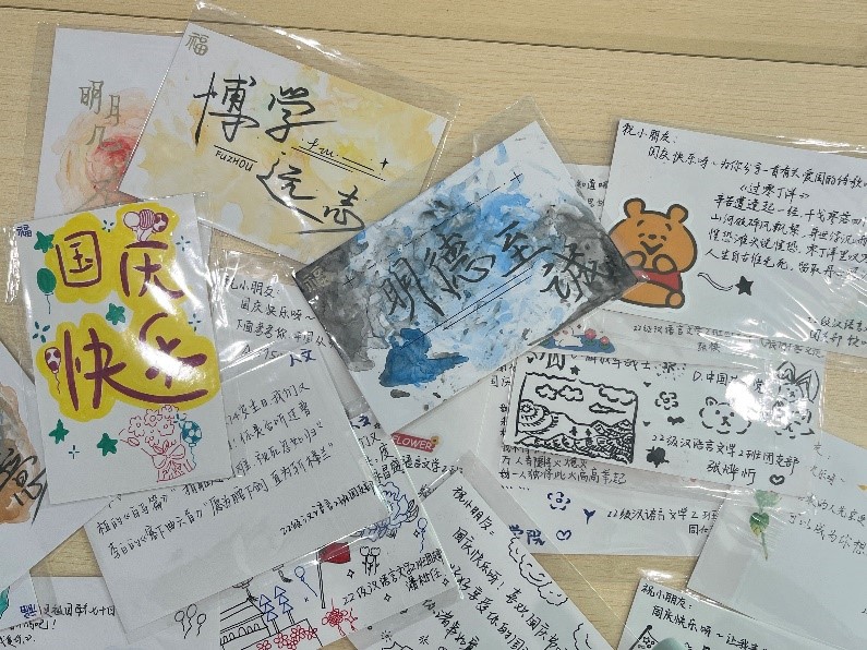 志愿服务部共同策划,在福建省泉州市南安康美公益图书馆开展为期两天的“明月映华诞,红色润童心”国庆系列主题活动,以手绘中国地图、军体拳教学等方式激发孩子们各项潜能,培养爱国情。在“鸿雁传情,红心相连”书信互动环节中,团支部全体成员准备爱国趣味问答明信片,向孩子们科普党史,得到孩子们的真诚回信。锦书相传,尽显爱国情与青年一辈投身实践,赓续红色精神的决心勇气。