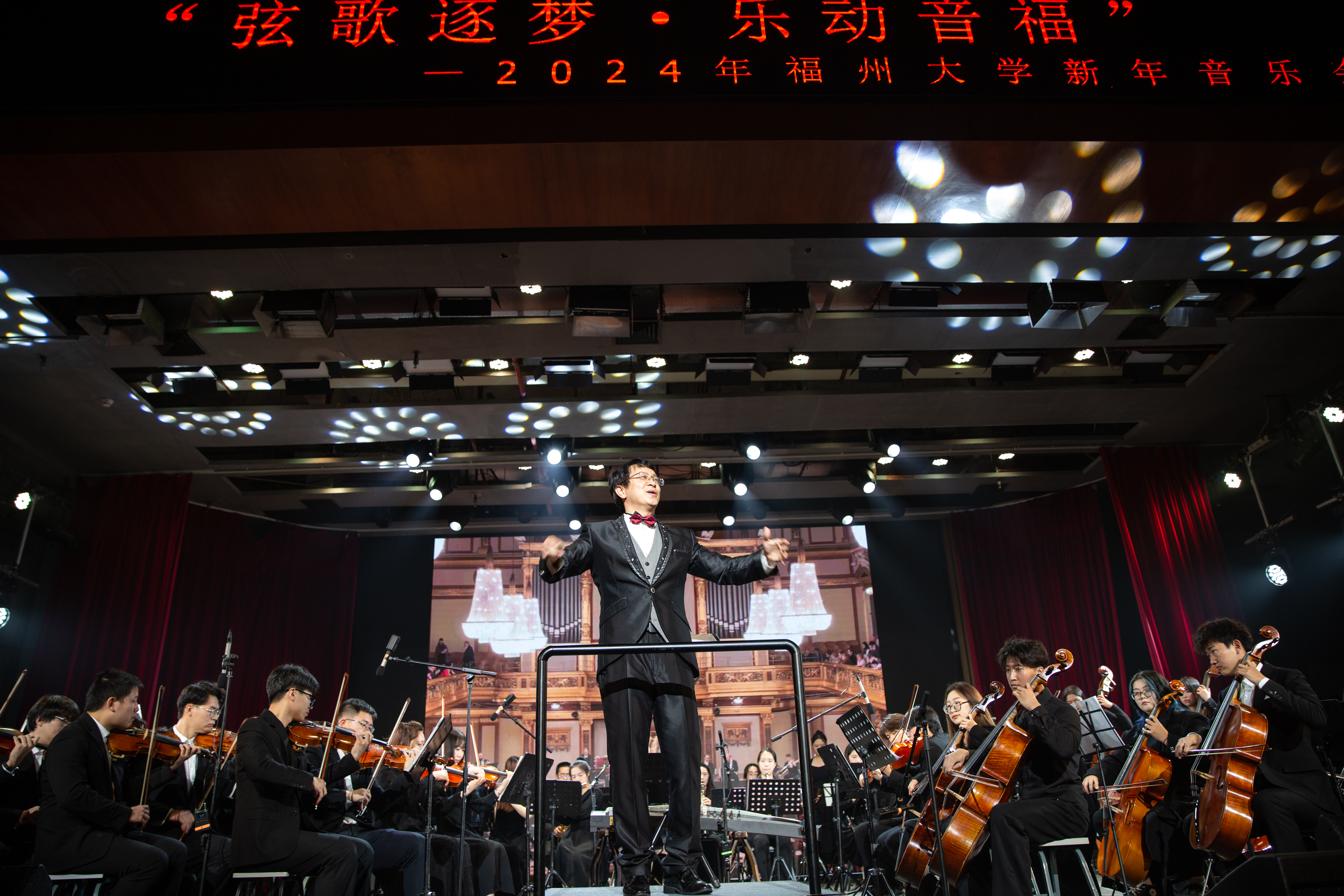 美育中心承办的2024年新年音乐会在旗山校区图书馆博学厅隆重举行。校党委陈国龙书记、黄身勇副书记,校党委常委郭文忠副校长出席活动,校机关部处领导、各学院领导、福大校友以及在校师生观看音乐会。