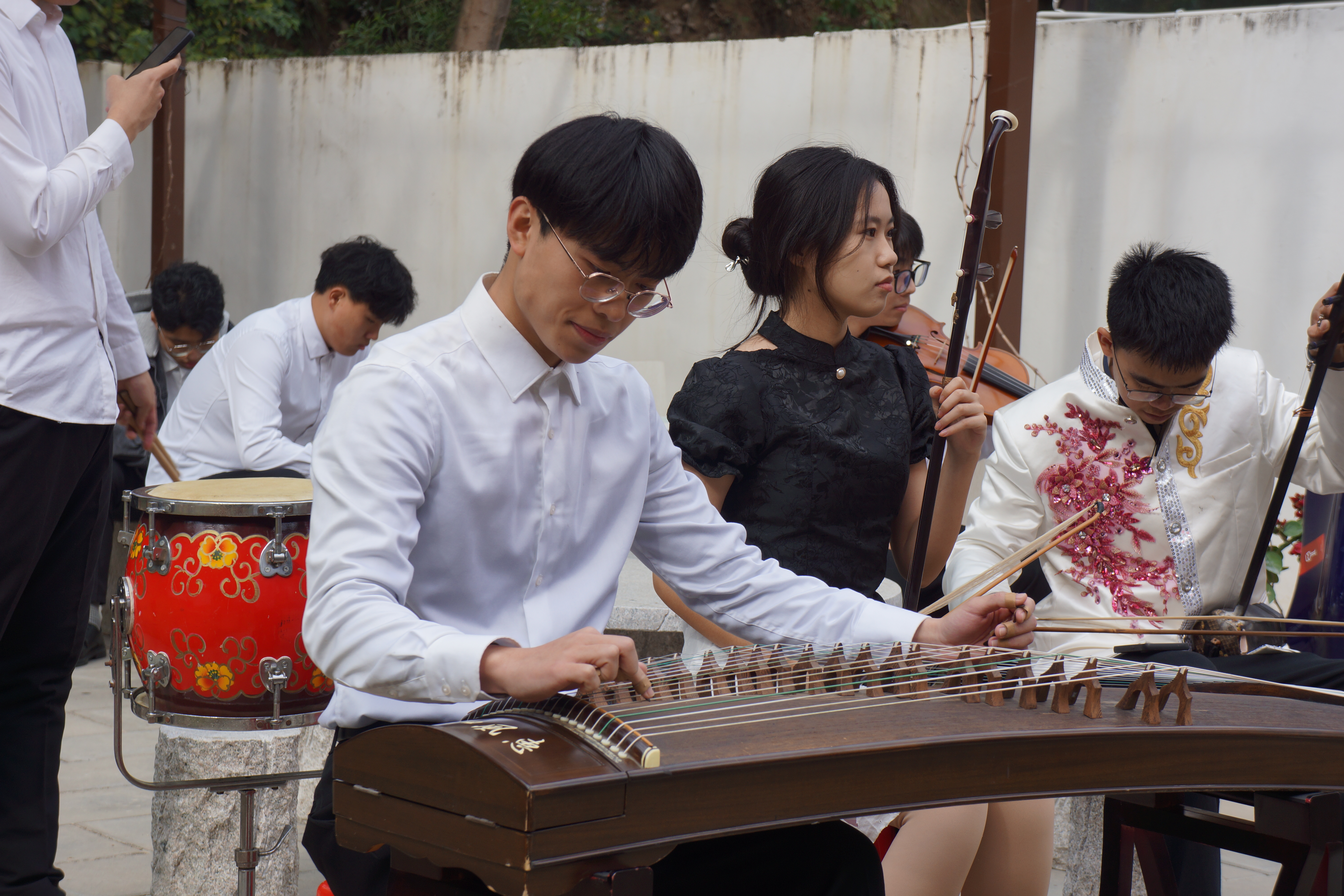 人文学院音乐学系的同学们演奏歌曲,用音乐快闪为本次活动拉开序幕。《青花瓷》《想见你》《相亲相爱》《美丽中国》……精彩表演赢得阵阵掌声,基地现场热闹非凡。