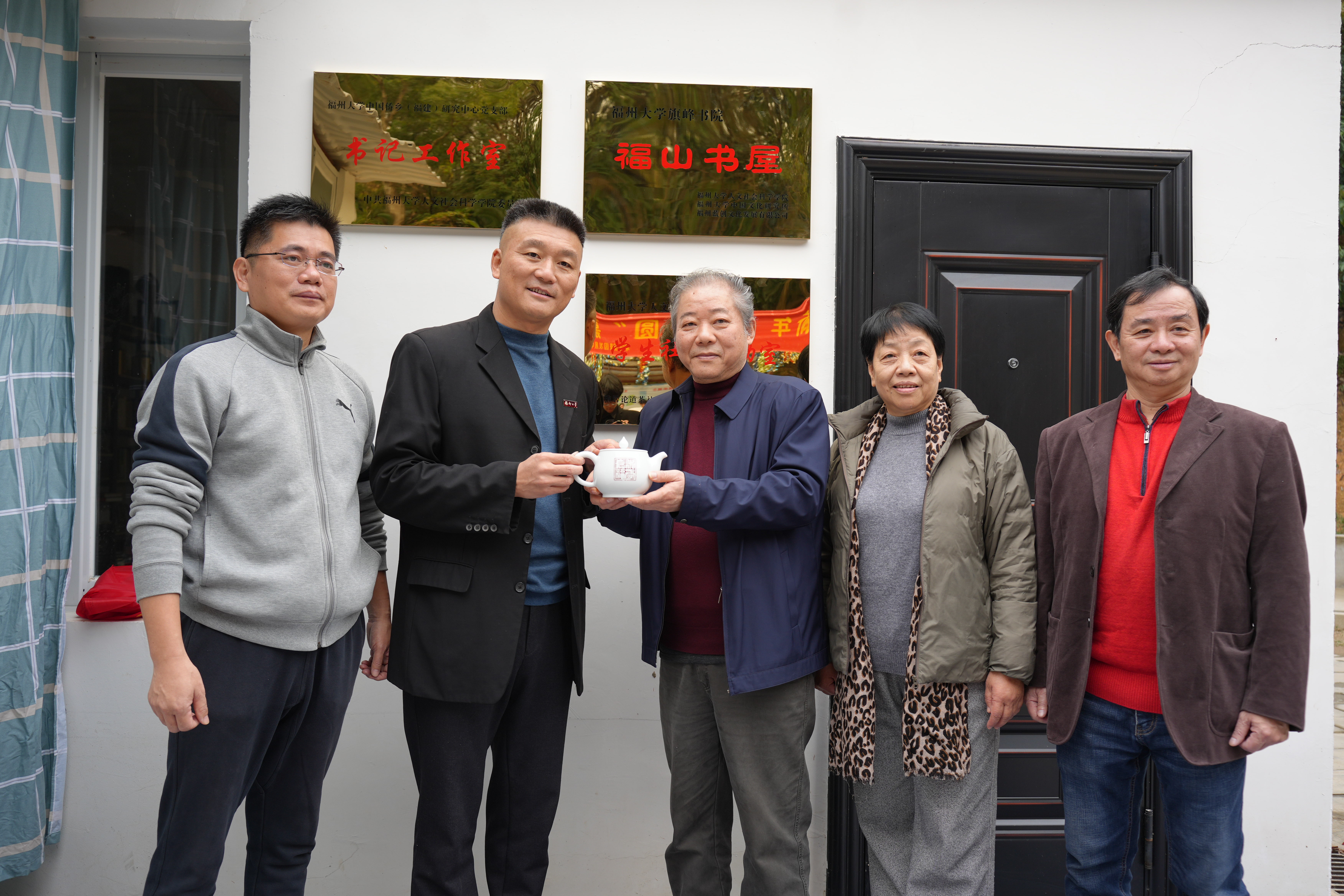 78级校友收藏家谢钟樑捐赠一把珍贵的瓷壶以作福大65周年校庆、人文学院20周年院庆纪念。该壶是为多位名家于景德镇联合所制的“百福壶·百福展”中百把瓷壶之一,制作精美,上有福大校训“明德至诚,博学远志”,寓意深远。