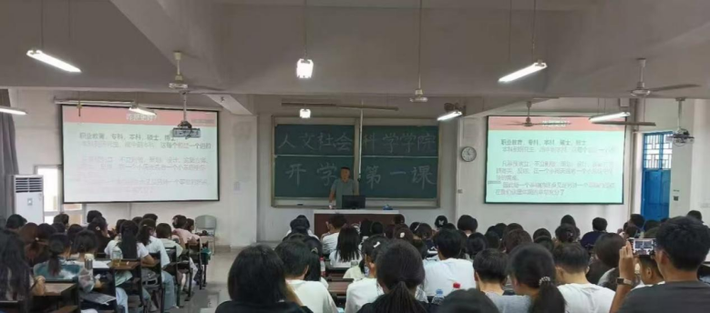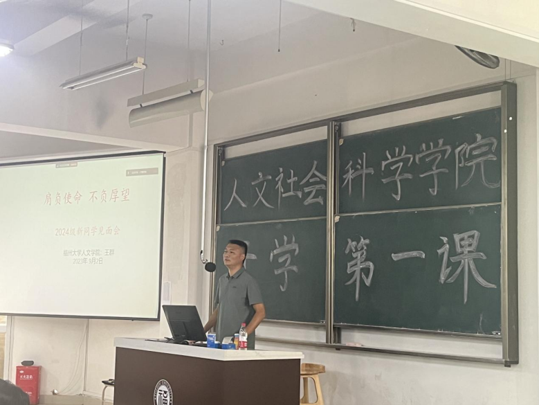 为引导2024级新生坚定理想信念,9月2日上午10点,人文学院党委书记王群为2024级本科生、研究生开展“开学第一课”新生入学教育。2024级本科新生在铜盘校区B210教室线下参加,旗山校区2024级音乐学新生及2024级研究生新生线上参加,学院党委副书记陈永福主持本次活动。