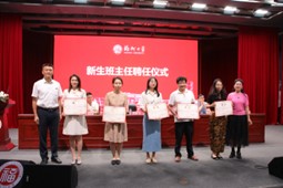 随后举行新生班主任聘任仪式。王群书记、吴慧娟院长为新生班主任颁发聘书,并寄托深切厚望。