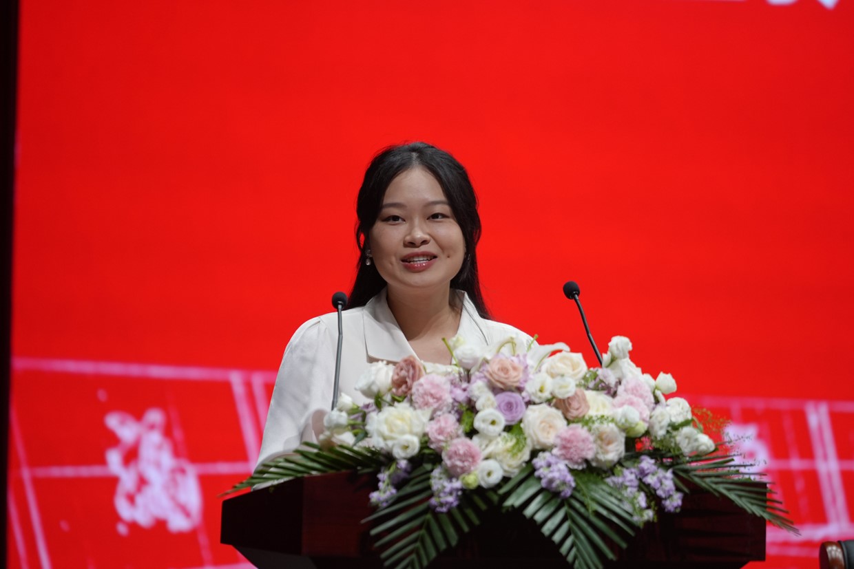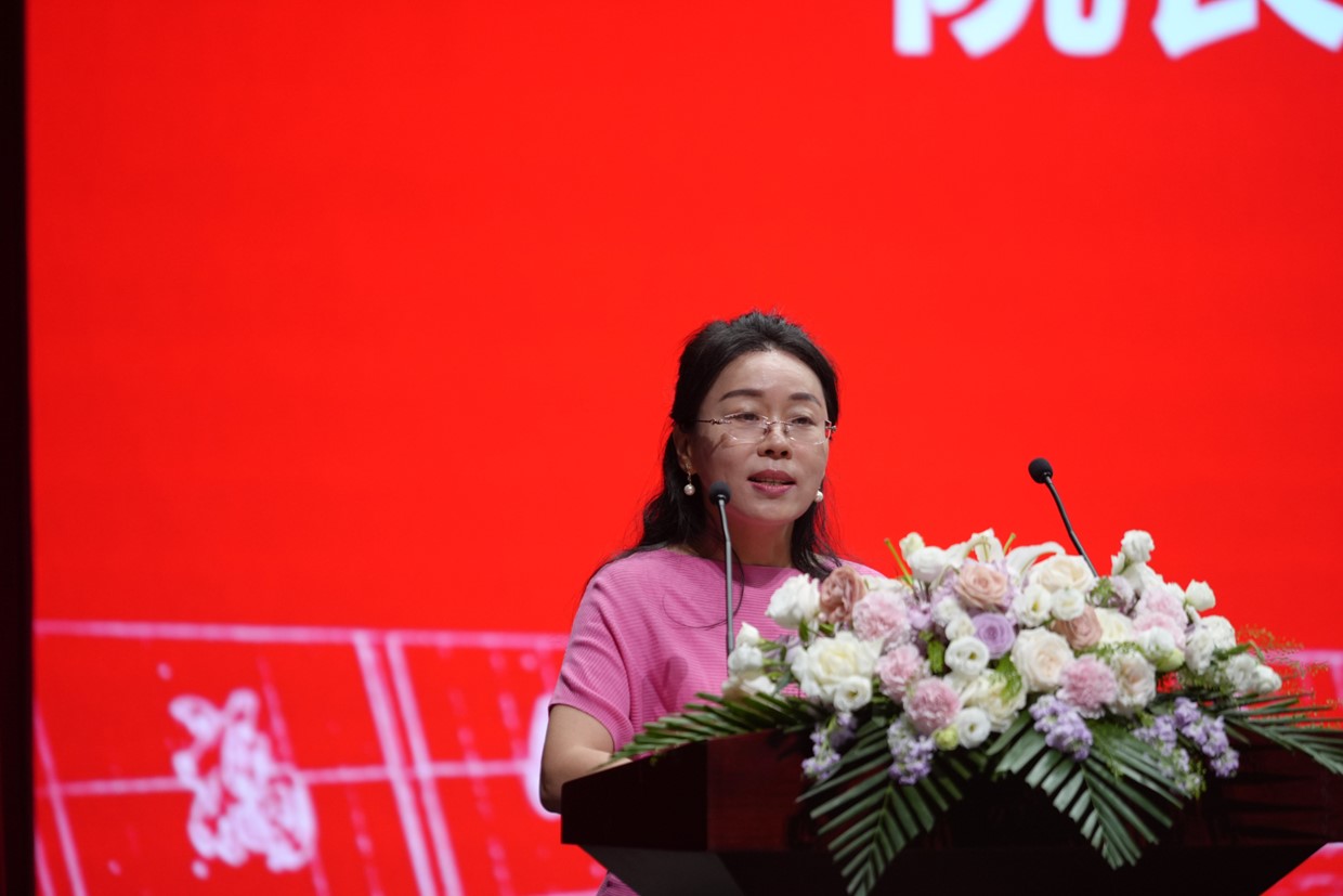 院长吴慧娟教授讲话。吴慧娟院长向2024级新同学们表示祝贺和欢迎,简要介绍学院发展情况,并向同学们寄予三点希望:一是志存高远,坚定理想信念。要树立远大理想,定好青春目标,坚定信念、明辨是非,养君子志气,塑青年底气;二是勤学善思,练就扎实本领。要养成主动学习的良好习惯,把学习作为一种责任、一种追求、一种生活方式;三是知行合一,投身社会实践。要读有字之书,更要读无字之书,做到学思用贯通、知信行统一,让书卷气更加接地气。