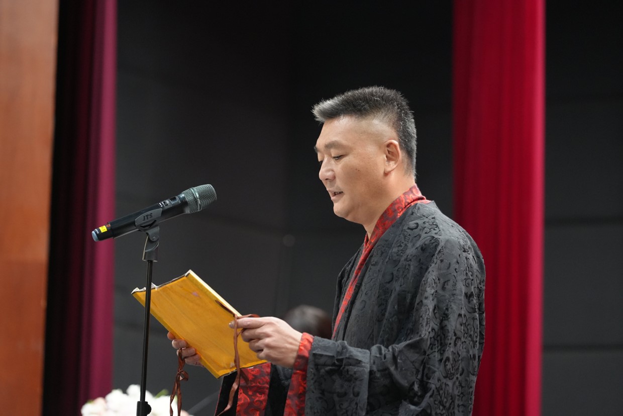 学院党委书记王群执简训教。他向诸位同学讲述三点期望,是为入学拜师之训:一是求学立世,谨记“学而不思则罔,思而不学则殆”。学者当学思并重,相辅相成,以勤为舟,以思为帆。希望同学们能前行不辍,激发潜能,拓展视野,提升自我;二是知人论世,明晰“先义后利者荣,先利后义者辱”。青年当“明大德、守公德、严私德”。面对纷繁世界,保持清醒,坚守底线,树立正确三观,方能行稳致远;三是察心辨志,洞悉“择其善者而从之,其不善者而改之”。怀自省之心,以他人为鉴,以社会为师,明辨善恶,改正过失。王群书记祝愿2024级人文新同学们,在福大学有所获、行有所得,成为有思想、有情怀、有温度的时代新人!