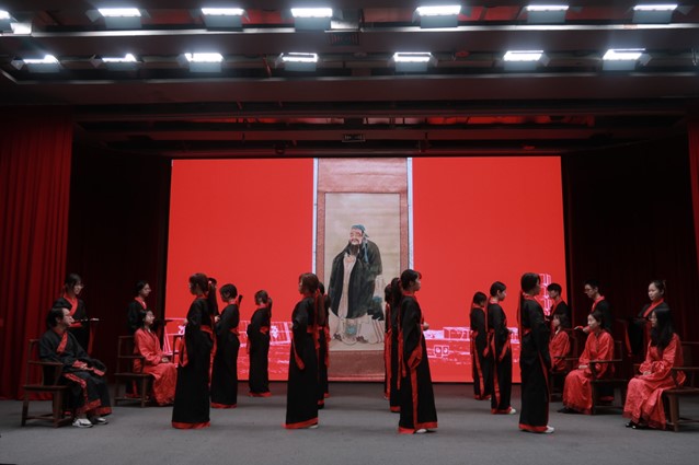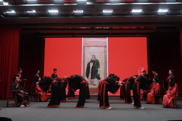 “善之本在教,教之本在师。”开学典礼结束后,颇具人文特色的拜师礼正式开始。人文师生身着汉服华裳,行拜师古礼。学子们敬奉六礼,表现尊师重道之心;师长郑重回礼,彰显言传身教之意。