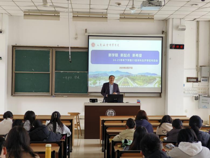 2月27日,人文学院团委书记齐朝阳以“新学期、新起点、新希望”为主题召开年段会,围绕开学注意事项、时事热点、学业规划等方面为同学们指明方向。