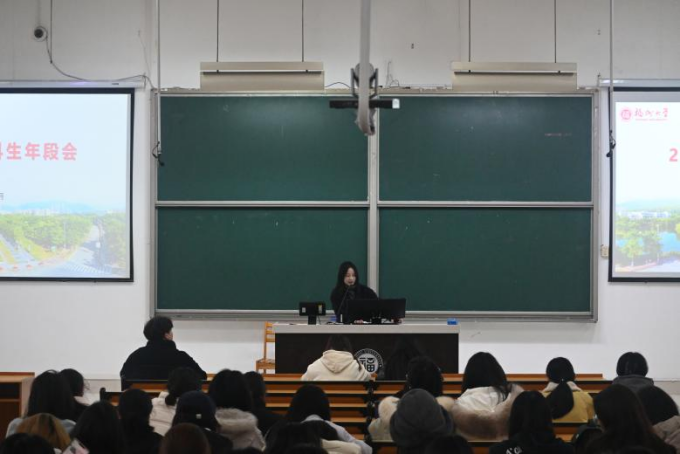 2月25日,2024级本科生年段会于铜盘校区报告厅A召开,辅导员谢婉婷主持会议。会上,谢婉婷老师首先介绍了新转入人文学院大家庭的11名新同学,此后围绕开学日常纪律、安全教育、学业规划发展等方面为同学们做重点强调。其中特别提醒同学们遵守课堂纪律、履行规定程序,杜绝违规电器、私拉电线等行为;针对新学期在新生群体中频发的诈骗案件,应警惕上门推销、电信诈骗等陷阱。年段会同时邀请24级社会学研究生林子鸿同学向同学们分享求学收获,祝福大家找到热爱的研究方向,做有科学思维的文科生。